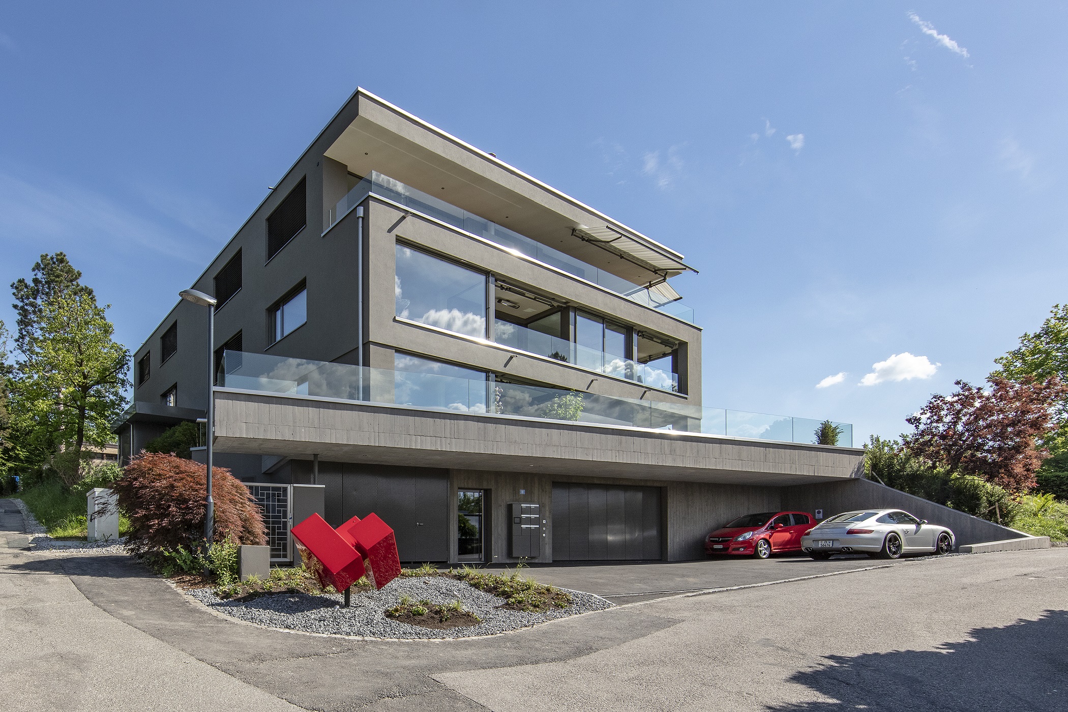 Ganzglasgeländer, Geräteraum, Garagentor, Türe
